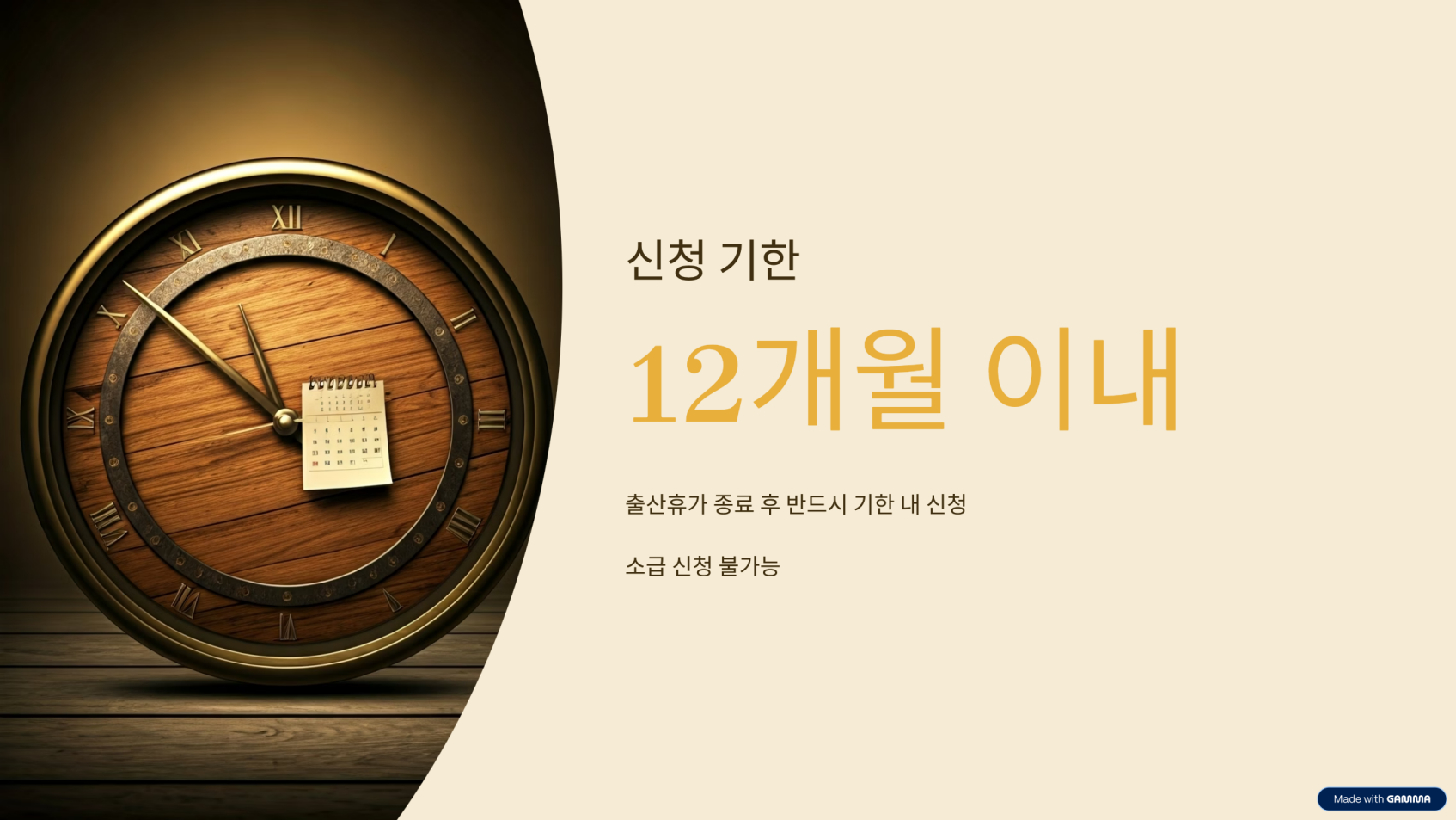 • 신청 기한은 출산휴가 종료 후 12개월 이내