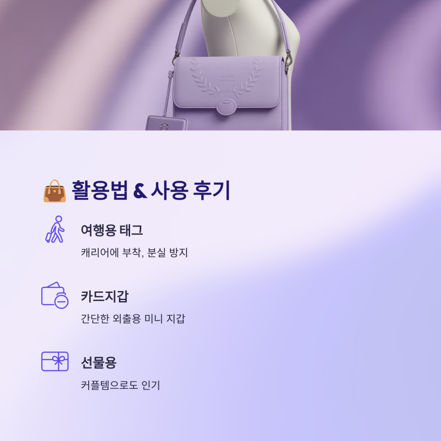- 투명 네임 카드창 : 뒷면에 내장된 네임카드 공간은 단순 장식이 아니라, 여행 시 분실 방지를 위한 실용적인 장치입니다.
