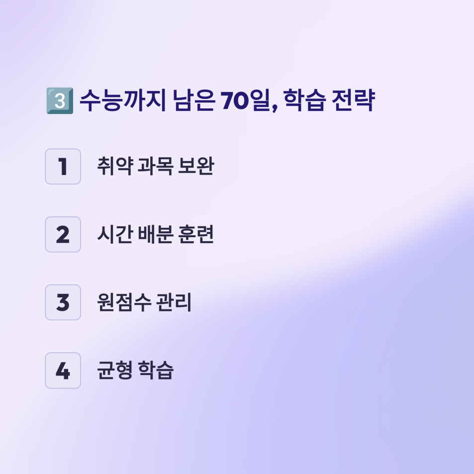 3️⃣ 수능까지 남은 70일, 학습 전략 4단계
