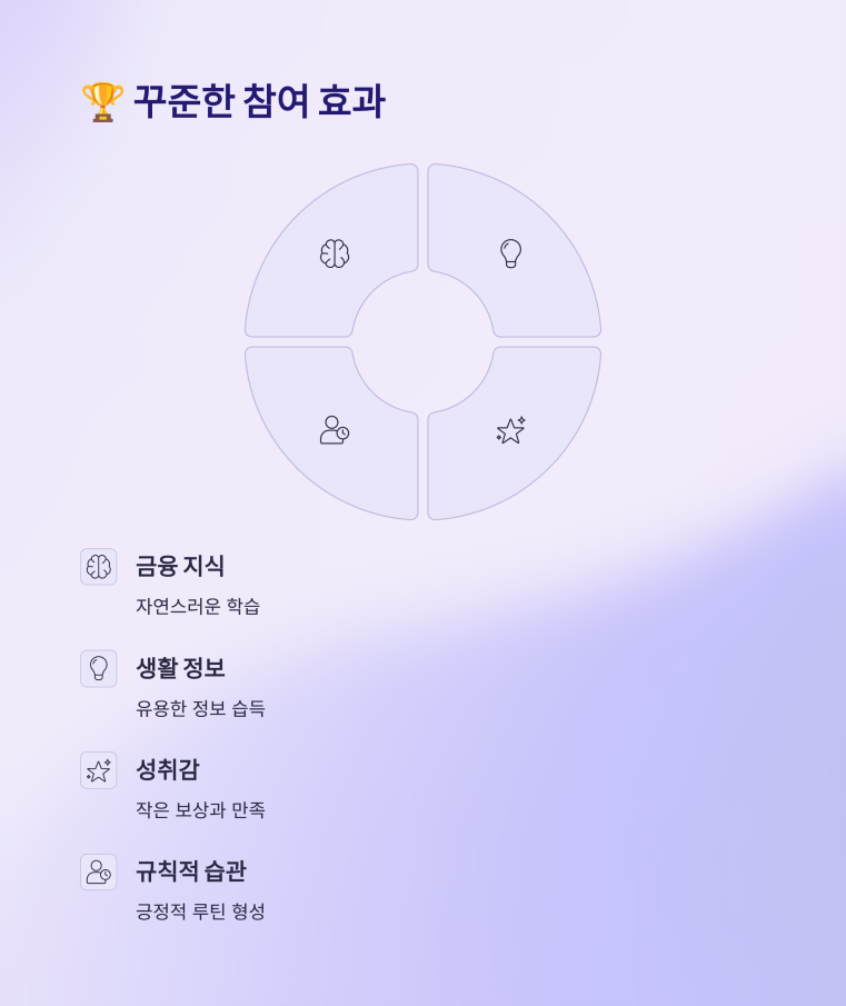 퀴즈 문제는 단순한 오락이 아니라 금융·생활·트렌드와 연관된 내용이 많습니다. 참여할수록 자연스럽게 유용한 정보를 습득할 수 있습니다.